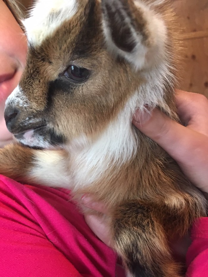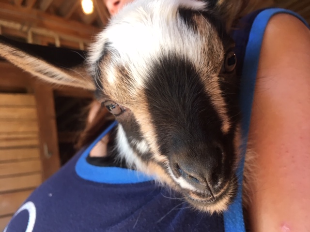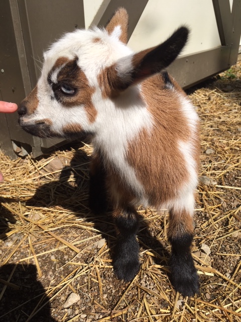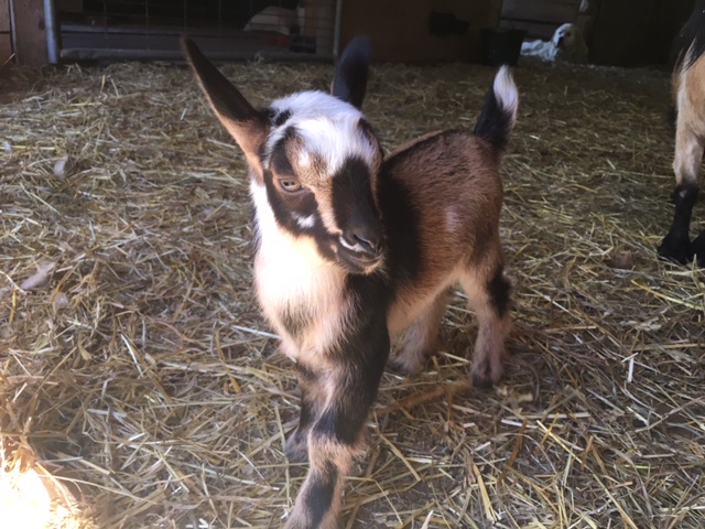 - Kili is a Chamoise blue eyed buckling with a white pole. He is disbudded.