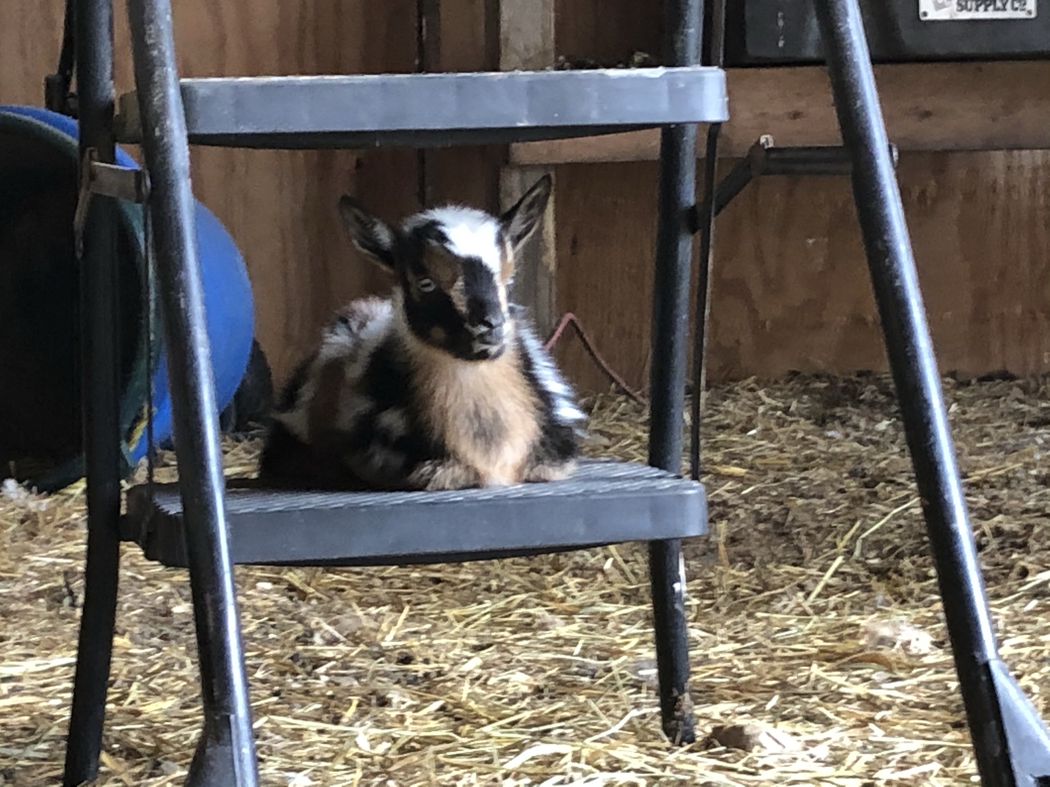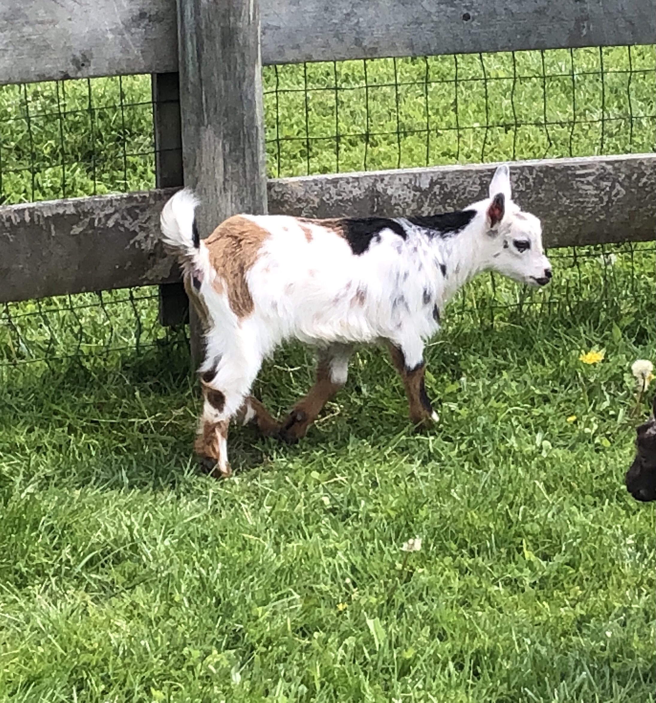 MRS. BIANCA MOUSE–Gave birth June 25 to 2 bucklings and one doeling. Bucklings sold. Doeling retained.