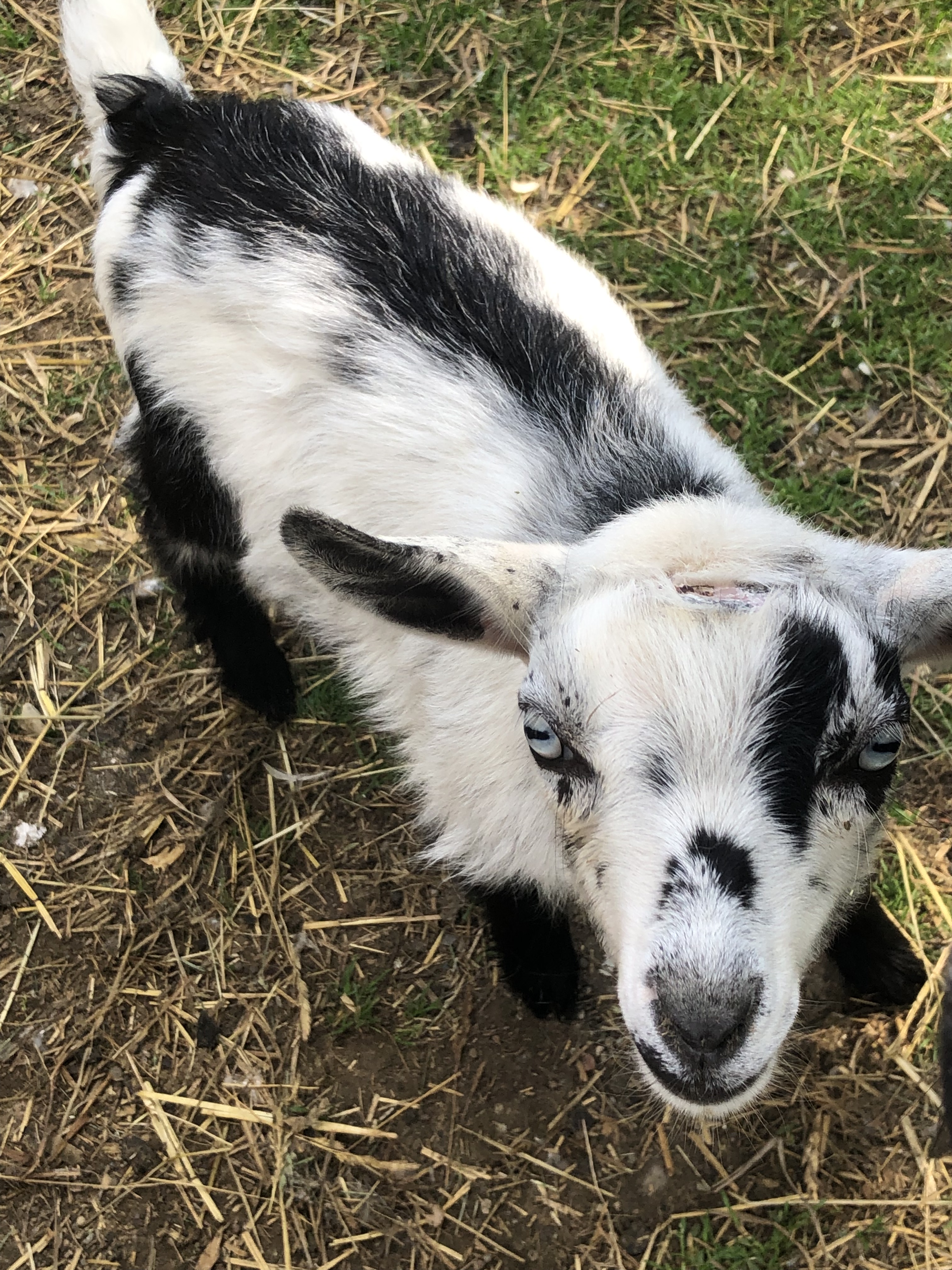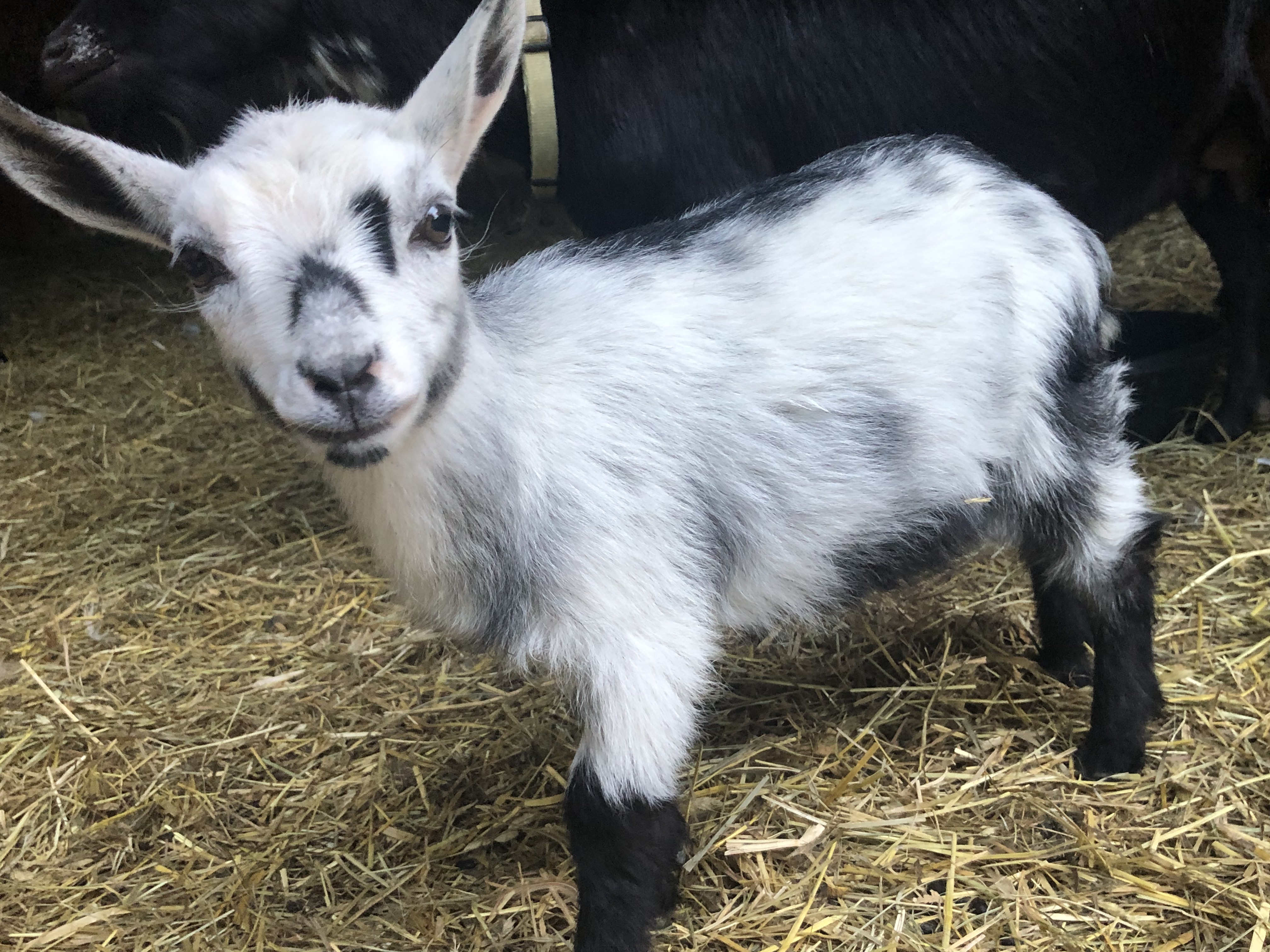 Doeling #1 Black with white pole. Brown eyes